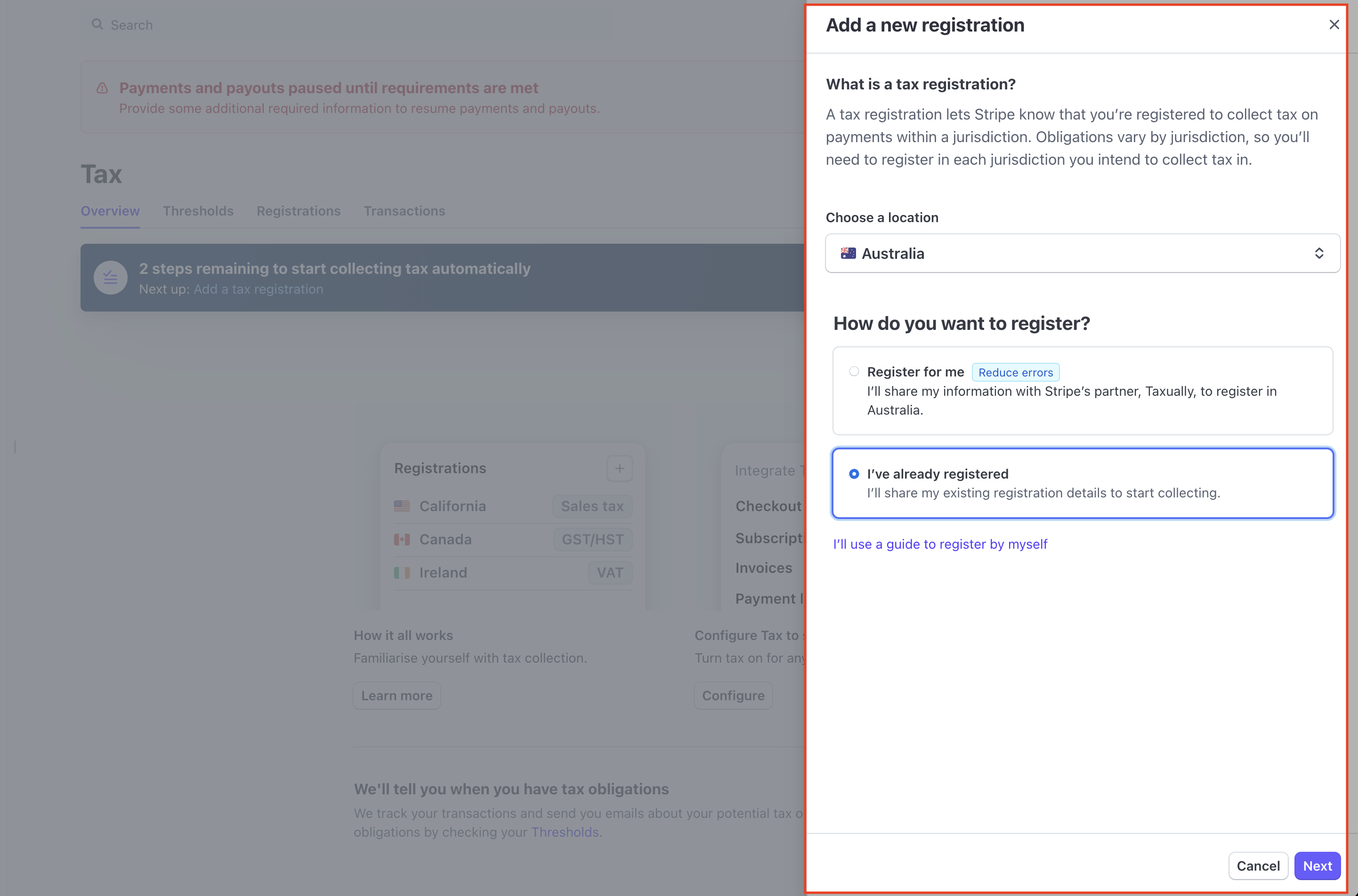 There you can find all tax assessments and transaction records generated by Stripe Tax, including those for recurring and one-time payments.