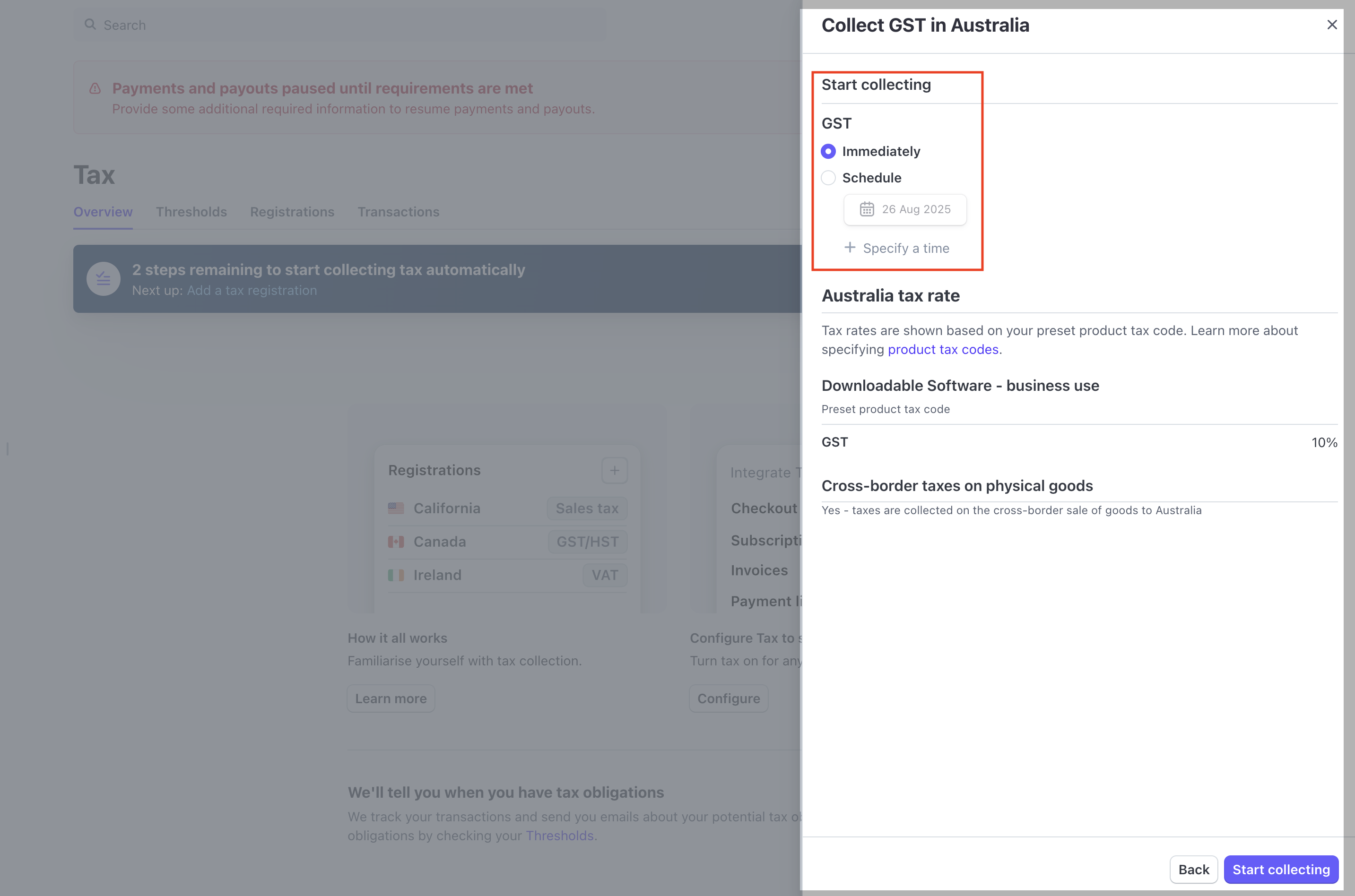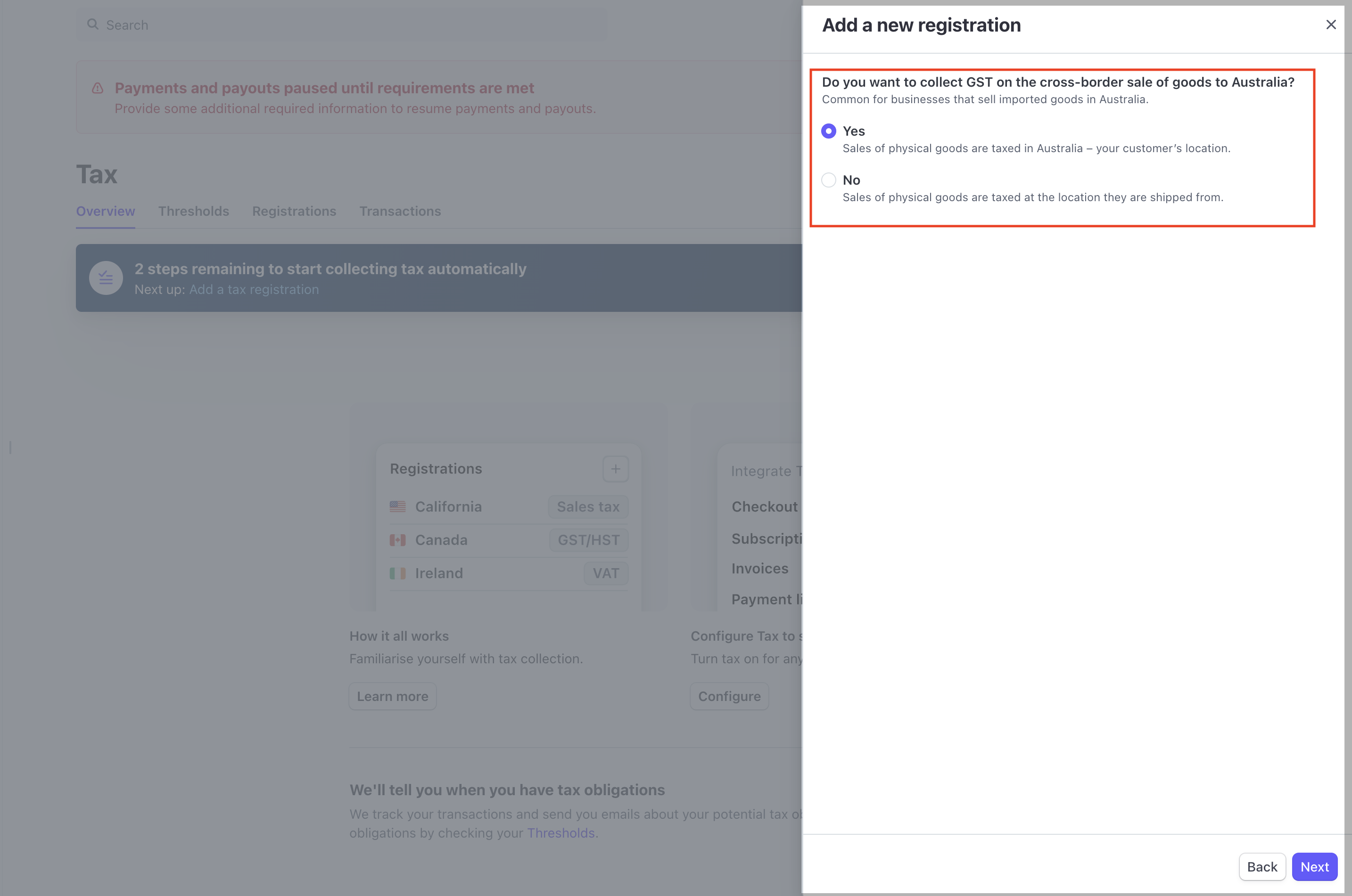 • If necessary, update the Product tax code to align with the products and services you plan to offer.