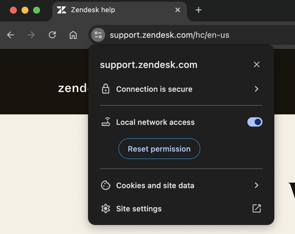 If access has been previously denied, allow access by clicking the site settings button in the URL bar and toggling the Local network access option.