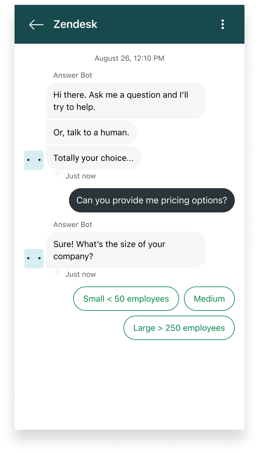 Example: Hiding the composer with quick reply options