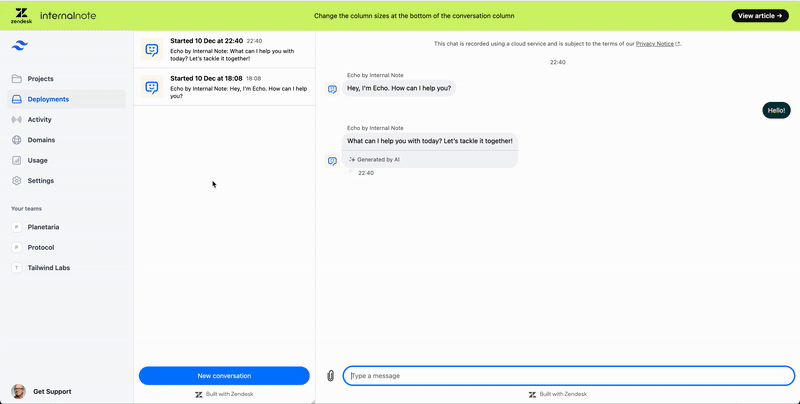 - Conversation API: The Create New Conversation API is available in embedded mode, but only after the widget has already been rendered.