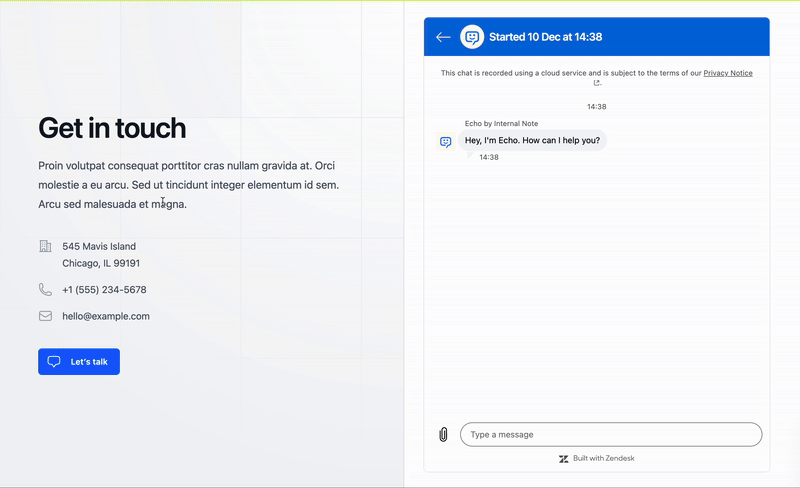 zE('messenger', 'render', { mode: 'floating' })after rendering in embedded mode will not convert the widget back to floating mode and may cause unexpected behavior. Use a single mode per page. - Container targeting: The widget can only be embedded by specifying a CSS selector or element ID. Passing an object reference to define the target container is not supported yet.